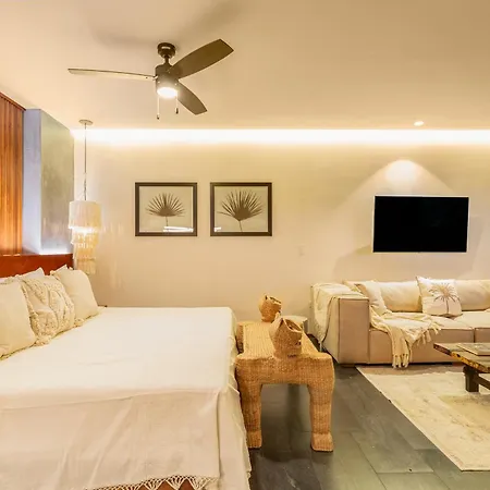 The 1-room 5 Star New Luxury Condo With Cenote And Infinity Pool Tulum is situated in the Zama district, around a 25-minute walk from the national park "Parque Nacional de Tulum", and overlooks the patio. The spacious 67 m² apartment features a private pool with a patio.